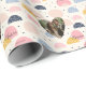 Soft pastel wrapping paper featuring a modern abstract pattern with customizable photo areas and names. Gentle colors and playful shapes create a sweet yet elegant presentation. Perfect for baby showers, birthdays, Mother’s Day, Valentine’s gifts, and meaningful celebrations.