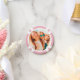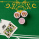 Personalized poker game chips with a custom photo and your own text (family name, established year, etc). This design in pink includes the number 250 but it can be edited with any value amount.