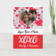 Personalized Valentine's Day card. Add your favorite couple's photo to this sweet custom Valentine's Day card. Blue and red hearts background. You can also customize all the text on the card.