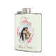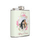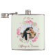 Your favorite couples photo and two lines of personalized text highlight this floral frame custom wedding flask.