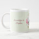 Your favorite couples photo and two lines of personalized text highlight this floral frame custom jumbo coffee mug.