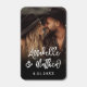 This matchbox design features a simple photo on the front with a subtle black gradient at the bottom, creating the perfect space for elegant white handwritten script calligraphy for the bride and groom’s names. The wedding date appears below in a clean, simple serif font.