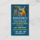 Personalized Photograph, Missing, Lost Pet Cards by The Business Card Store. These cards have the same information printed on both sides of the card for a very good reason. Delivering them door to door? Then no matter what side the card lands on when put through a letterbox, the recipient will be sure to see it. Putting it up in a shop window? Then the information on this card will be seen both inside and outside of the premises. These cards are also great value for money as they come in packs of 100. Perfect for all kinds of lost pets, dogs, cats, birds, rabbits etc.