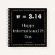 Customize this Happy International Pi Day Notebook with names or messages, featuring framed Pi digits and equation in black and gold for math lovers celebrating March 14. Ideal as a personalized gift for teachers, students, or geeks, perfect for journaling with inspirational math vibes.