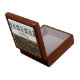 This product is made with beautiful mahogany wood, the inside is lined with white satin. The hinges are very sturdy and keeps a tight close on the box. The pattern tile is wonderful It's truly is an exquisite product. This is a gift for anyone and for any occasion. A fine wooden piece to display on your furniture anywhere in your home. The printing accented the design on the box very well. Very pleased with the Font.