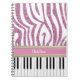 Personalized Piano Keys Pink Glitter Zebra Print Notebook