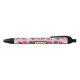 Very nice blue, or black ink pen. I will be buying more. The print was fine. I can easily see the print. The flowers look great.
