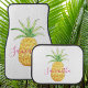 These fun summer-style car mats are decorated with a yellow and green watercolor pineapple and stylish pink typography.
