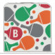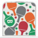 Colorful ping pong rackets and balls cute graphic design is on this personalized/customized pong table.