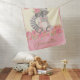 This darling baby blanket makes the perfect gift for a baby shower or for a new mother. This design features an adorably cute raccoon surround by bouquets of pink roses on a pink and cream background. Personalize it with the name of your choice.