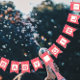 Personalized Pink and Gold Dot Patten Wedding Bunting Flags