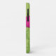 Personalized modern hot pink and lime green swirly floral damask Case-Mate iPhone 11 Case with PRINTED ON ribbon and jeweled brooch.