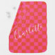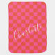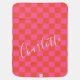 Personalized Pink and Orange Checkerboard Pattern Baby Blanket