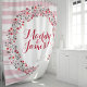 Elevate your bathroom décor with this charming and personalized shower curtain. The design features a delicate floral wreath in shades of pink and red, framing customizable names or initials in an elegant script. The striped background in soft pink adds a touch of whimsy and complements the floral theme. This shower curtain is made of high-quality, water-resistant fabric, making it both stylish and functional.