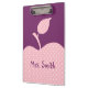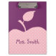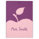 Stem, leaf and top of a polka dotted apple shape in white, purple and white. This clipboard can be personalized for your favorite teacher. You can change the background and text color to create a unique, custom gift for Teacher Appreciation Week. If you transfer to another product, pick a purple background and text color.