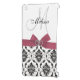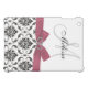 This beautiful, monogrammed, black and white damask iPAD MINI Case has a photo of this design embedded into the hard plastic cover. The girly, chic design is made up of a black and white floral damask pattern, a printed pink bow and ribbon, two hearts with diamonds and a white portion where you can add your name and monogram initial in gorgeous script fonts. Stylish and girly, a perfect gift for her. PERSONALIZE WITH YOUR MONOGRAM, INITIAL AND NAME. Design by Elke Clarke©2012. for MONOGRAM GALLERY. Graphics licensed for use.