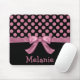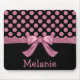 Personalized Pink Black Polka Dot Ribbon Bow Mouse Pad