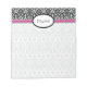 Elegant and stylish vintage pink, black, and white floral damask personalized notepad. You can personalize the name on this custom notepad.