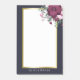 Pretty personalized post-it notes in dark blue with a pretty rose bouquet and faux gold details.