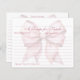 Celebrate the bride-to-be with the Personalized Pink Bow Bridal Shower Recipe Card, a charming keepsake for your guests to share their favorite recipes. These custom bridal shower recipe cards feature a lovely pink bow design, adding a delicate and elegant touch to your celebration. Perfect for collecting cherished recipes, these personalized recipe cards are a beautiful and thoughtful way to contribute to the bride’s new kitchen.