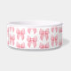 Girly Personalized Pink Bow doggie Bowl easily add your own custom text. Trendy coquette pink bow pattern.