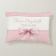Personalized Pink Bow pillow - beautiful shabby chic, coquette girly feminine design. Sweet blush ribbon bow new baby girl keepsake pillow with her name in script lettering and her date of birth and place of birth.