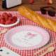 These modern Watercolor Pink Bow Girl Baby Shower Paper Plates are perfect for a delightful baby girl celebration. Personalize them with the Mom-to-be's name to make the occasion even more special. Delicate pink bow, a gingham pattern with script calligraphy, and a simple and clean design will set the perfect ambiance for your pink bow-themed baby shower, making it a memorable and stylish celebration.