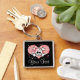 A goth yet girly heart and personalized skull keychain and key ring with a grunge grey and pink splatter background. Personalize this cute skull and crossbones key chain with a heart background with your own name or whatever you want to say on it. Artwork © Chrissy H. Studios, LLC. All Rights Reserved.
