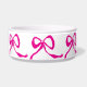 Girly Personalized Pink Bows doggie Bowl easily add your own custom text. Trendy coquette pink bow pattern.