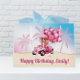 Celebrate in style with this personalized pink convertible beach party gift bag. Decorated with a fashionable doll, a pink convertible, and palm trees in a pink and blue color scheme these napkins are sure to make any girl's birthday extra special.