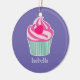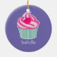 Personalized Pink Cupcake WIth Polka Dot Cherry Ceramic Ornament