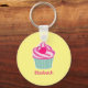 Personalized Pink Cupcake WIth Polka Dot Cherry Keychain