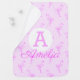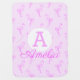 Beautiful cream pink color baby blanket with flamingo pattern and custom monogram. The pink color represents youth, good health, and playfulness.
