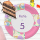 These pretty birthday party plates have a pink border with a pattern of colourful circles, in the style of a ribbon wrapped around a gift. Personalize with the birthday child's name and age number, which will appear on the central white section of the plate.