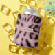 Personalized Pink Faux Fur Leopard Print Can Cooler