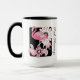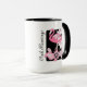 The product design features a flamingo with kaleidoscopic paisley patterns in shades of pink. This tropical bird original whimsical illustration makes a girly cute and unique coffee mug with personalized text.