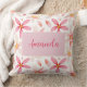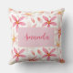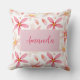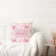 Personalized Pink Floral Throw Pillow - Are you shopping for a cute floral throw pillow? This pillow is set on a white background with different pink flowers. It also has a pink nameplate which can be personalized with whatever name you want - first name, proper name like MOM, or message.