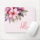 Pink and rose colored flowers on mouse pad, personalized with your name.