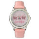 Watch features an original marker illustration of a pink frosted cupcake with sprinkles and a bow. Simply personalize with the wearer's name!