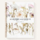 Personalized elegant earthy rustic wildflower recipe notebook, with florals in pinks with a small sprinkle of gold glitter.