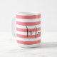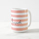 This modern personalized mug features a striped pattern in a dusky pink and peach gradient with a customizable name in black handwriting.