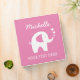 Personalized pink and gray binder with baby elephant and custom text. Cute animal design with hearts for girl or boy. Customizable background color ie pastel pink, soft yellow, grey, light blue, purple etc. Adorable baby illustration for photo album of child, grandchild, granddaughter etc. Sweet gift idea for baby shower, 1st birthday, new mom or mother to be. Elegant script typography.