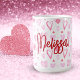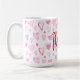 Spread the love with this personalized ceramic mug adorned in delicate pink hearts. Featuring your name in bold red script, this 11-ounce or 15-ounce mug is the perfect gift for Valentine's Day, a birthday, or just because.
