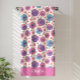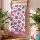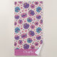 This floral beach towel design is complete with a seamless pattern of pink and purple hibiscus flowers set against a cream background. There is a place to add your name at the bottom of the towel.