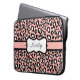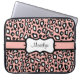 A pretty pink and black leopard print decorates this stylish laptop sleeve. Personalize this retro style laptop sleeve by changing the name. The design is from original art.