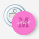 Personalized pink monogram name magnetic beer bottle opener. Personalize with your name and initial letter. Elegant script text. Handy for home or party.