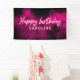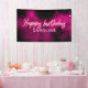 Fun birthday party banner, featuring a pink neon "Happy birthday" sign with a name over pink smoke on a black background. Matching tableware and decorations available. If you need help customizing this, please contact me using the contact button below and I'll be happy to help.