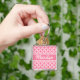 A pretty pink and white pattern decorates this keychain. Customize this keychain by changing the name to suit your needs. The design is from original art.