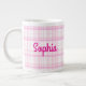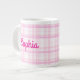 Cute pink plaid mug personalized with any name. Perfect for coffee, tea, or latte lovers. A stylish custom gift for birthdays, Mother’s Day, friends, or everyday cozy moments. Make every sip feel special with a unique personalized cup.