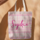 Personalized Pink Plaid Name Tote Bag